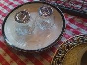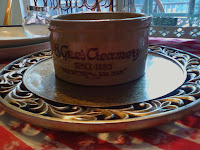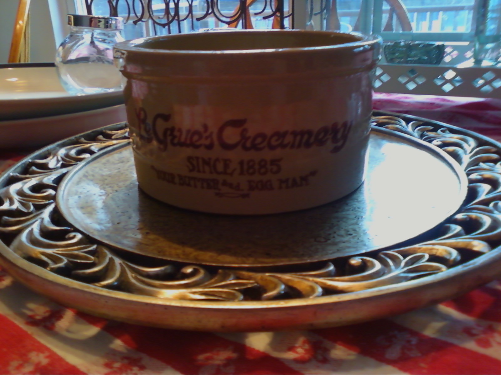 In addition, I found two pasta/salad plates that are white with a black rim. I'm slowly building an everyday collection of mix and match black and white dishes. I picked up two sweet little bottles that I have revamping plans for, a really cute little dairy crock (perfect for butter or dips), a small sundial for my garden (come on spring!) and an ornate plate that will soon hold a candle and some potpourri or a floral/boxwood wreath. Hmm..seems that most of these items are staying with me. Well, some days it's like that. I can't sell every treasure I find, can I?
